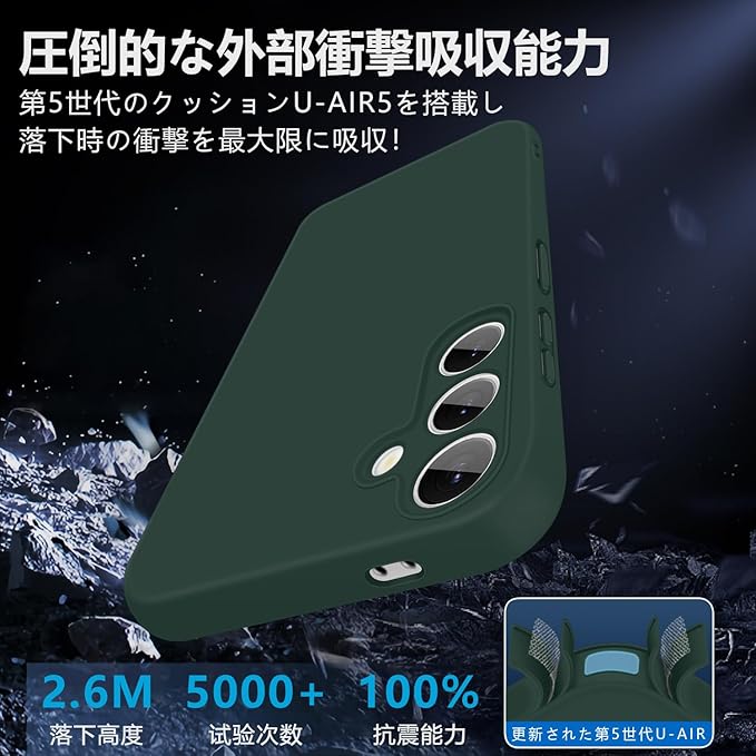 【シリコンケースの質感と特徴】シリコン製スマホケースは、優れた柔軟性を持ち、柔らかく手に馴染みやすい安定感があります。シリコン特有の弾力性を備え、優れた衝撃吸収能力を発揮します。さらに、内部にはTPU製の保護パッドが設けられており、耐衝撃性と吸収力が一段と向上しています。そのため、うっかり落としてしまってもスマートフォンをしっかり保護することができ、日常使用に非常に適しています。