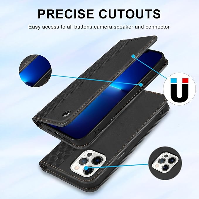 Gedurya iPhone 15 Pro Max ケース 手帳型 アイフォン 15 pro max ケース ひし形柄 iphone15promax ケース 手帳型 マグネット式 スタンド機能 アイフォン15promax 携帯カバー カード収納 財布型 iphone 15 pro max スマホケース 全面保護 耐衝撃 6.7インチ対応 - ブラック