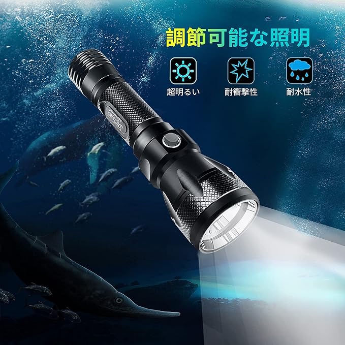 IPX8強力防水:IPX8強力防水、ダブル0リング機構で水没しにくいですので、水深100Mまで平気に使えます。(0リングが劣化した際、交換してください。)(ご注意:ダイビングライトの落下、衝突、および分解を避けてください。故障の原因となります。)