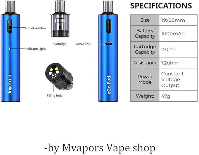 Joyetech eGoポッドキットは、重量が47gで高さが98mmのみの新しいベーパーにユーザーフレンドリーな、最小かつ最軽量のスターターキットです。