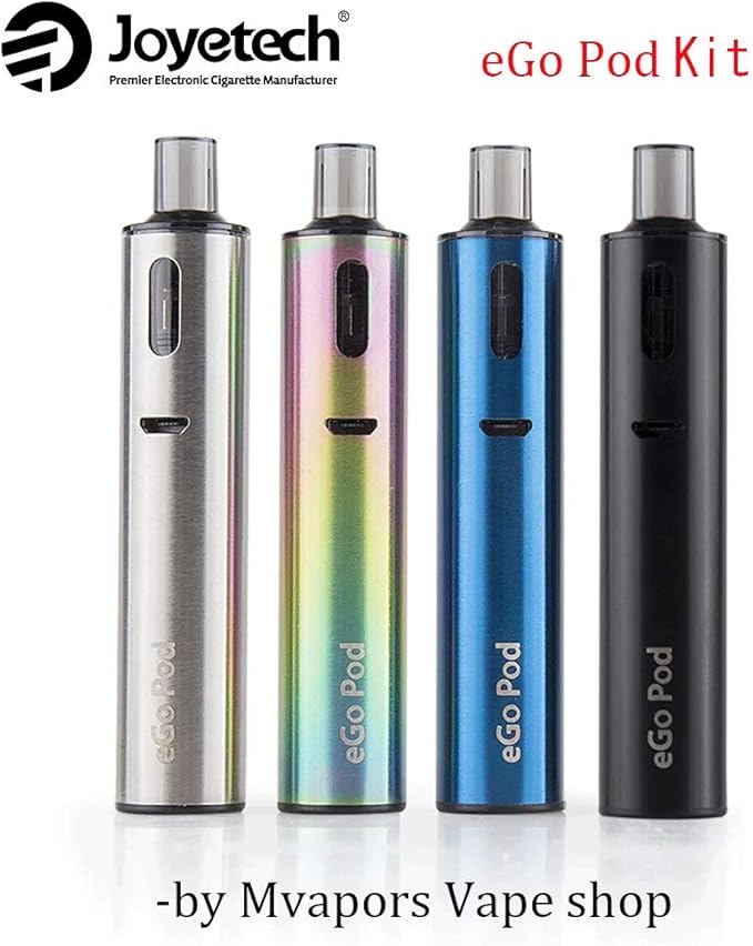 Joyetech eGoポッドキットは、耐久性のあるステンレススチールボディを備え、1000mAhの内蔵バッテリーから電力を供給され、側面のマイクロUSBポートを介して充電されます。