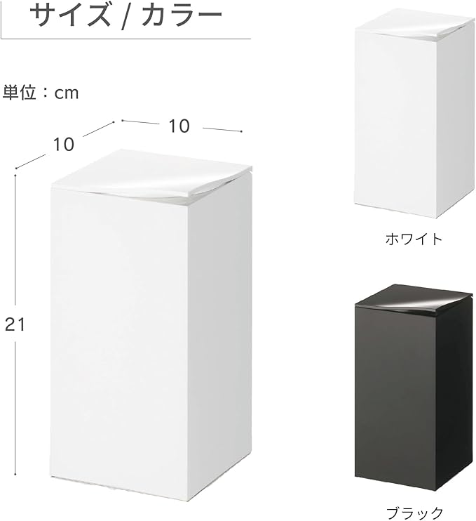 ●セイズ:約 幅10 奥行10 高さ21cm●重量:約370g●内容量:1個●材質:カバー、フタ:ABS樹脂●内容器:ポリプロピレン●カラー:ブラック●生産国:日本製●備考:対応ポリ袋:23 28mm※内容器は各色共通でブラックとなります。