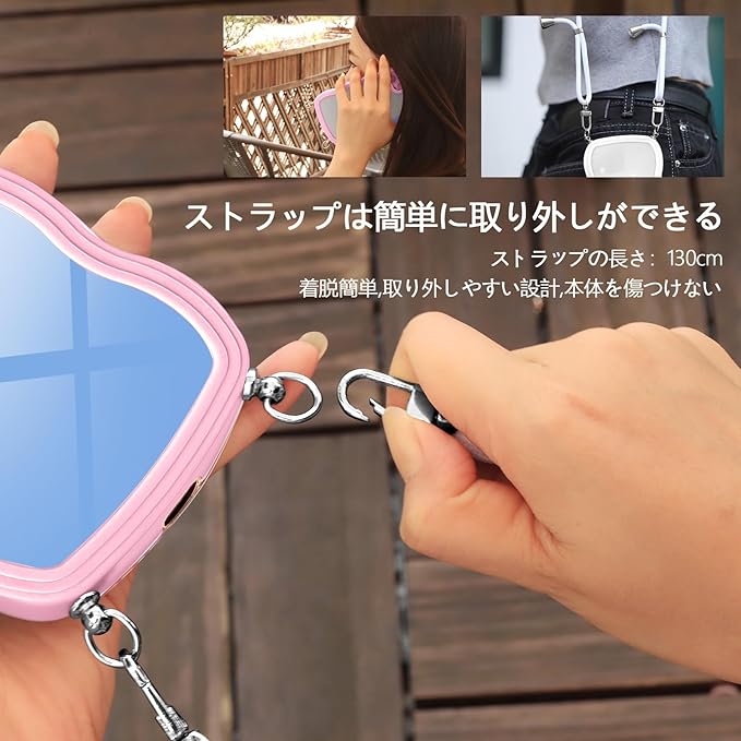 【ネックレスケース】シリコンケースには首から下げられるようにショルダーストラップが付いており、まるでアクセサリーのようにスマホを着用できます。落下防止はもちろん、紛失防止にも役立ちます。 特に旅行や、小さなお子様がいるお母さんにおすすめ、手荷物がある時にスマホを持ち続ける必要がなくなりますし、スマホを落としたり無くしたりといった心配もなくなります、バッグから携帯を取り出す手間がはぶけます。