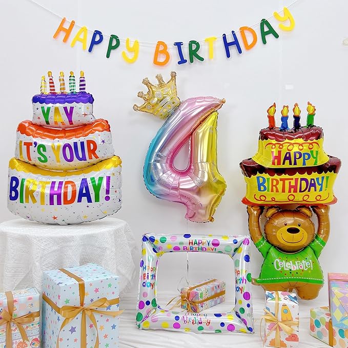 4歳 誕生日 飾り付け 男の子 女の子 大人 誕生日バルーン バースデー 飾り ケーキバルーン フォトフレーム バルーン クマバルーン おしゃれ 写真撮影