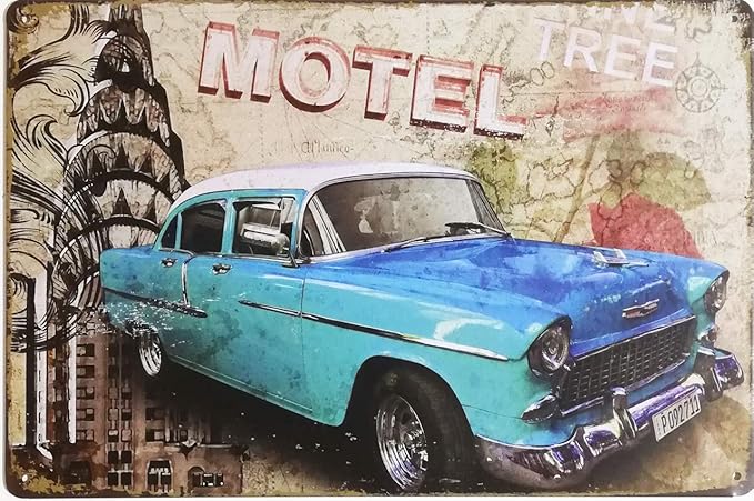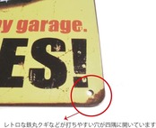ブリキ製のレトロ看板。アメ車やヴィンテージのカスタムカーショップやアメリカンダイナー、バーの雰囲気にマッチする看板です。
