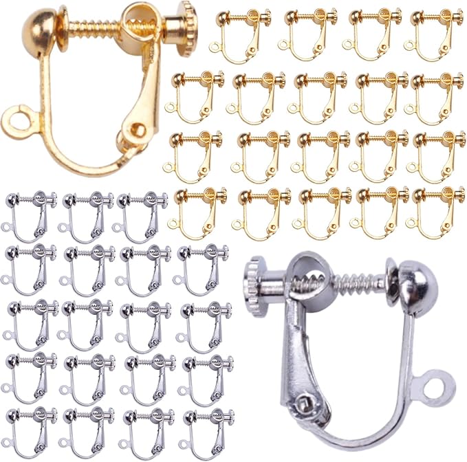YINKE イヤリングパーツ 40個 手芸 手作り用 パーツ イヤリング 耳穴なし アクセサリーパーツ ネジバネ式 DIY 基礎金具 (ゴールド+シルバー各20個)
