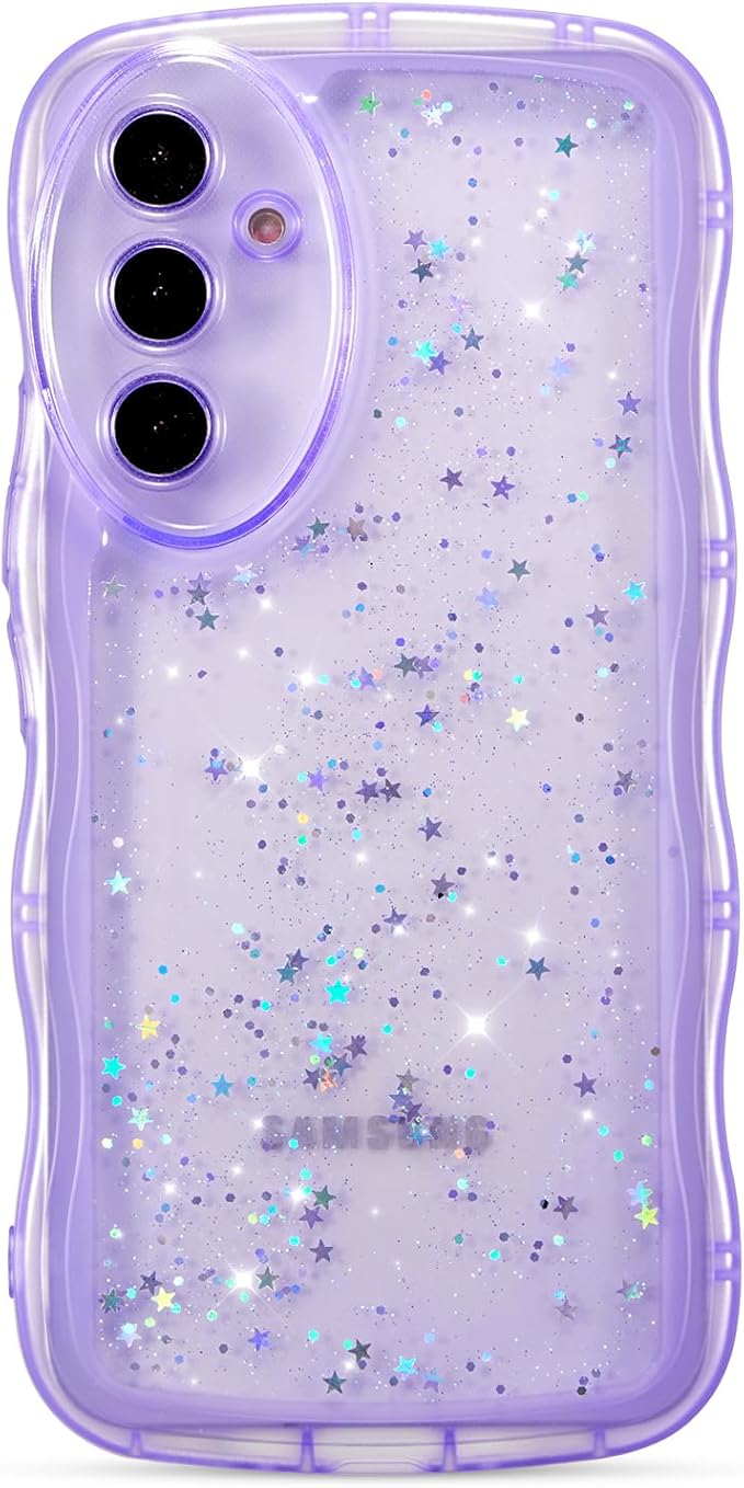 ZTOFERA Samsung Galaxy A54 5G 用波状のケース 透明 クリアケース サムスン ギャラクシー A54 5G ウェーブケース 可愛い おしゃれ キラキラ 星 スマホケース ソフトTPU スターパターン 軽量 耐衝撃 人気 韓国 A54 5G ケース 女子 女性 携帯電話カバー (パープル)