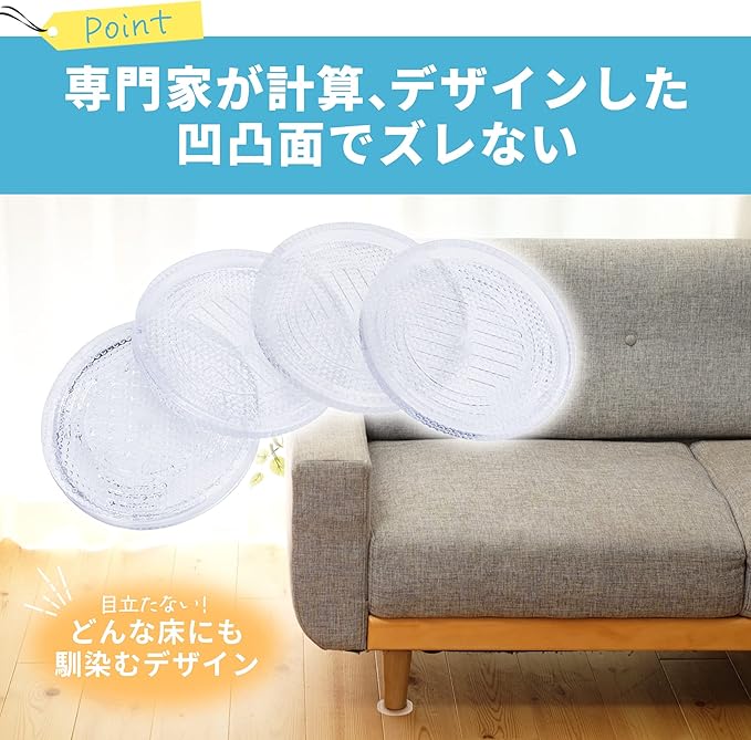 【現役建築士監修】 滑り止めシート ソファー用 ズレない 汚れ防止 静音 防震 傷防止 【4枚セット】 直径5.8cm 丸型 シリコンマット 机 ベッド 凹み防止 床暖房対応 騒音対策 透明