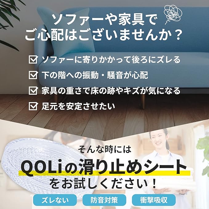 現役建築士監修 超強力 滑り止めシート【高純度シリコンのピタッ止め 寄りかかってもOK】QOLiの滑り止めシートは建築士監修で今までの経験、様々な状況を想定して商品開発をいたしました。