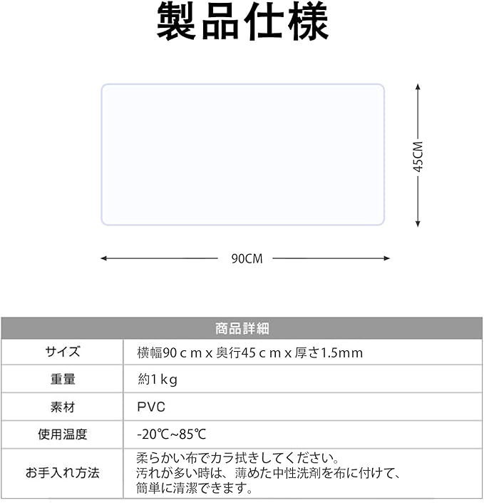キッチンマット クリア PVC 45*90cm 厚さ1.5mm クリアマット 台所マット 透明マット ソフト 撥水 おしゃれ 汚れ防止 お手入れ簡単 床暖房対応 滑り止め 1K/1人暮らし適用 (90*45cm)