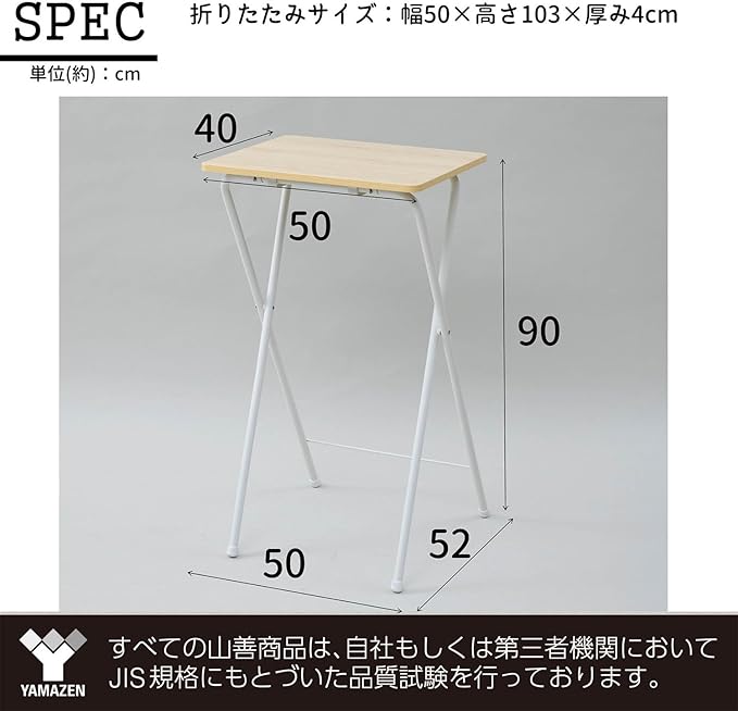 山善(YAMAZEN) 折りたたみテーブル (スタンディングデスク) 高さ90 傷・汚れ・水分・熱に強い天板 幅50 奥行52cm サイドテーブル スタンディングデスク 完成品 ウッドナチュラル/ホワイト RYST5040H90(WNWH) テレワーク