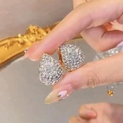 【きれいめ華やかデザイン】二重に広がるリングピアスの片方にジルコニアを敷き詰め、温かみのあるリング本体と、輝くジルコニアをミックス。サイズにもこだわって設計し、小ぶりなまま存在感があるサイズ設計