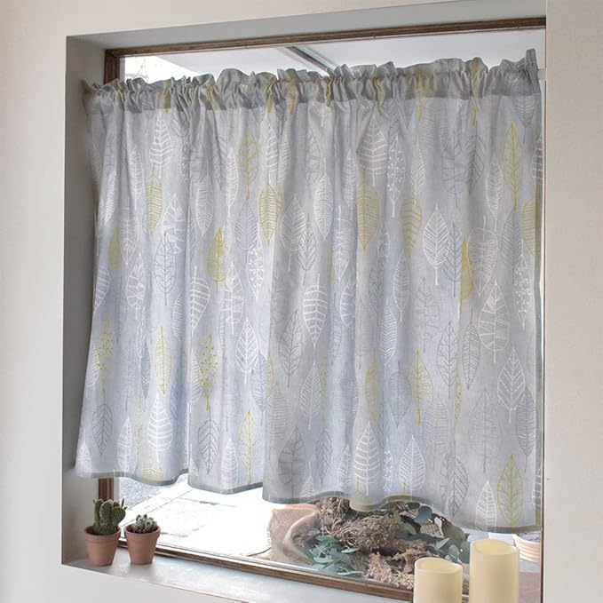 スタイルデコール(STYLE Decor) カフェカーテン 綿100% (72cm 100cm) スタンダードタイプ リーフスケッチ W3902310