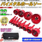 バイメタルホールソー 直径18~75mm 12本セット 18mm 20mm 24mm 28mm 30mm 35mm 38mm 45mm 50mm 55mm 65mm 75mm
