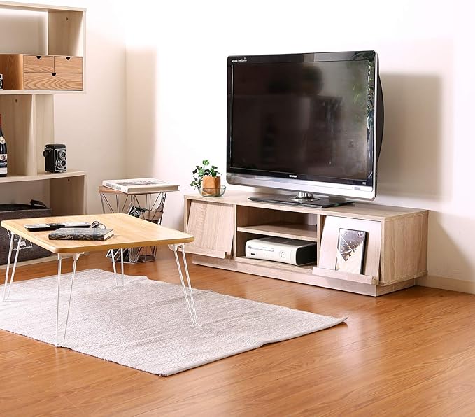 不二貿易 テレビ台 TVラック 32型対応 幅119 奥行38 高さ34cm ホワイトオーク ローボード フラップ扉 キャスター付き 99262