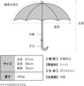 水面の輝きを連想するキラキラとしたパイピング、パールのような輝きの手元とパールボタンが幻想的な雰囲気を演出します。傘を開くと美しい空間をお楽しみいただけます。16本の多骨が美しいフォルムと高い耐風性を実現。美しさと機能性を兼ねそろえたデザインに仕上がりました。