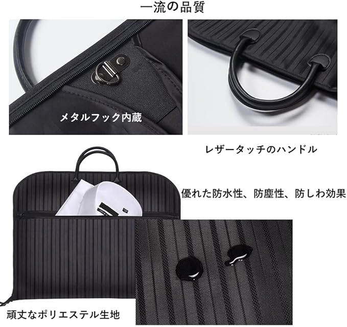 ⭐️【出張シナリオ向けにカスタマイズ】より厚い生地、優れた防水性、防塵性、防しわ効果、ビジネスマンはぶつかりによるスーツのシワの心配がない。ビジネスマン必携!男性向け機能性ガーメントバッグ。スリム設計でオフィス移動もスマートに。スーツのシワを気にせず安心して持ち運べる専用収納ソリューション。