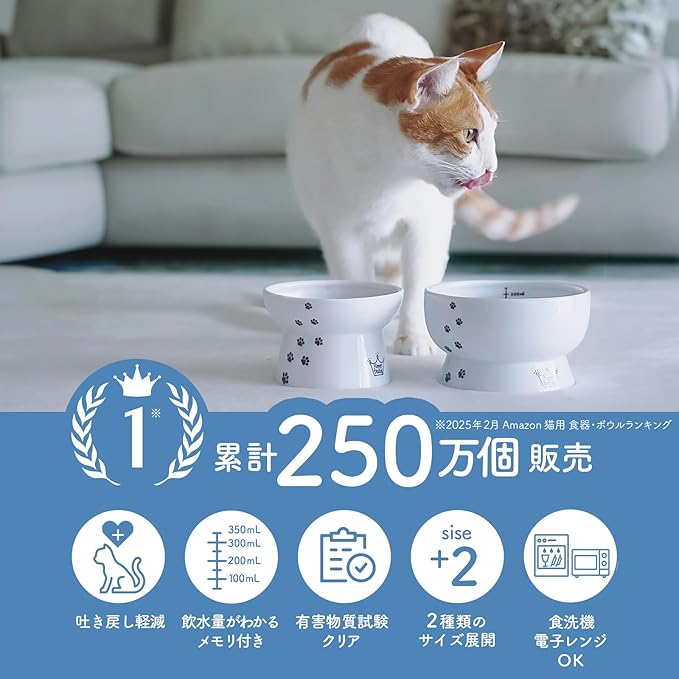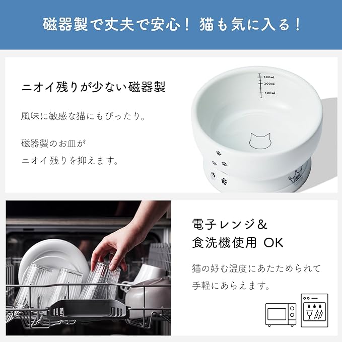 「猫工学」に基づいたデザイン食器で、猫が負担なくお水を飲めます。