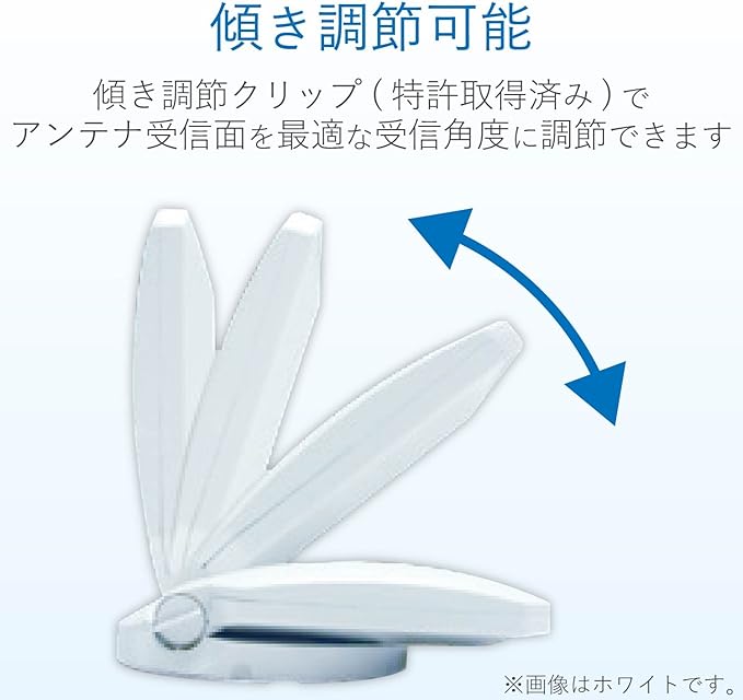 独自の傾き調整クリップで、アンテナ受信面を0~90度の範囲で無段階に調整、固定が可能