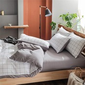 NSNLGSGC 布団カバー セミダブル 4点セット 布団かばー ベットカバー ベッド用 double 白 ホワイト チェック柄 韓国 洋式・和式兼用 洗い替え速乾タイプ 防ダニ