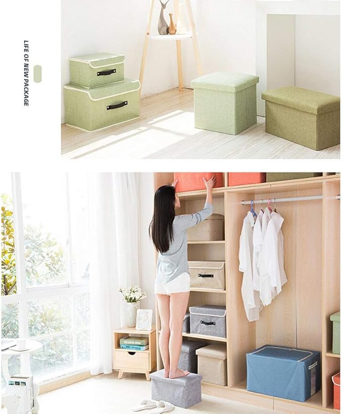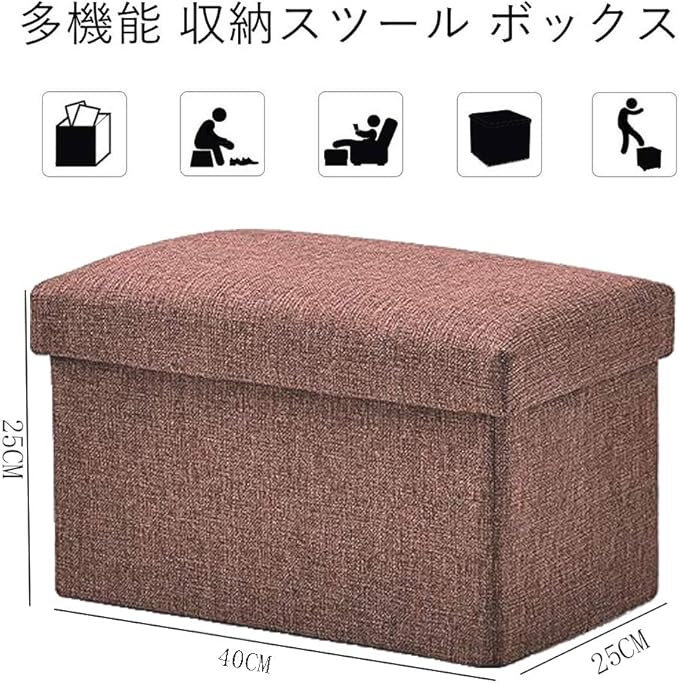 収納スツール オットマン収納ボックス 折りたたみ 【耐荷重100kg】 座面取り外し 足置き 椅子 収納 大容量収納 綿麻製 衣類収納 小物収納 リビング/玄関/寝室適用 (ブラウン, 40*25*25cm)