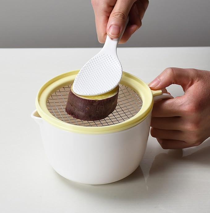 素材・材質:容器・ふた・目皿/ポリプロピレン(耐熱温度140度・耐冷温度-20度)、こし網枠部/ABS樹脂(耐熱温度80度・耐冷温度-20度)