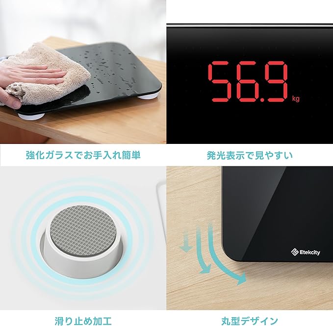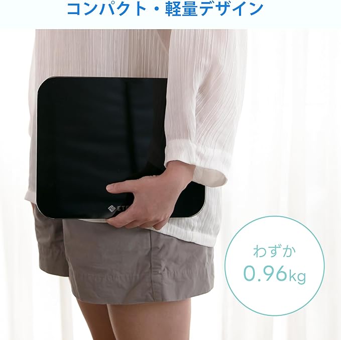 ETEKI 体重計 ヘルスメーター 50g単位 2年間品質保障 たいじゅうけい電源自動ON/OFF 小型 180kgまで対応 強化ガラス コンパクト 電池付属 EB4010J ブラック