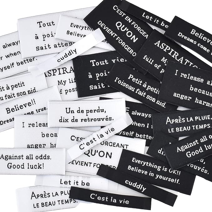 ■ご注意:・在庫の状況で一部内容が変わる場合がございます。 ・セット済み商品のため、中身の変更を承ることはできません。 ・ロットにより細いタグに折り目がついていない場合がございます。その場合はアイロンで折り目をつけていただきますようお願い申し上げます。 ・白のタグは黒のタグよりも柔らかい仕上がりとなっております。シワやヨレなどがある場合はあて布をしてアイロンをかけていただくと綺麗に直ります。 ・一部刺繍がずれている場合がございます。 ・刺繍のお色によって色むらに見える場合がございます。 ・刺しゅうで作られたタグですので、糸の加減で裏糸が少し見える場合や糸が飛び出している場合がございます。気になる場合はカットしてご使用ください。 ・折込部に汚れのようなものがある場合がございます。 ・断裁ズレがある場合がございます。 ・折り目が斜めになっている場合や、折込部の長さが左右で異なる場合がございます。お手数ですが、当て布をしてアイロンで折り目を付け直していただきますと綺麗に直ります。 上記ご了承の上、お買い求めいただきますようよろしくお願い申し上げます。