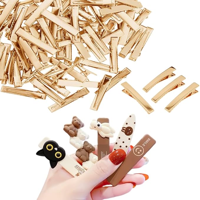 サムコス ヘアクリップ 約50個入り クリップ 土台 金具 パーツ ヘアピン DIY ハンドメイド 髪留め ヘアアクセサリー デコ素材 手芸用品 大人 業務用 (ゴールド約5.5cm)