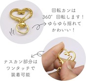 ナスカン部分はワンタッチで装着可能。360度回転するので、パーツが絡みづらく、ゆらゆら揺れて可愛く仕上がります。