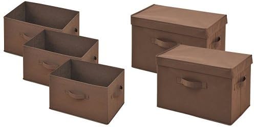 【セット買い】山善(YAMAZEN)どこでも収納ボックス 3個セット + ふた付2個セット ブラウン