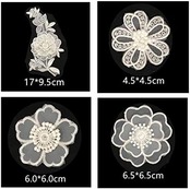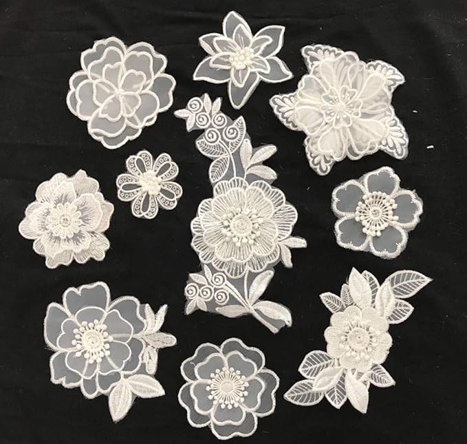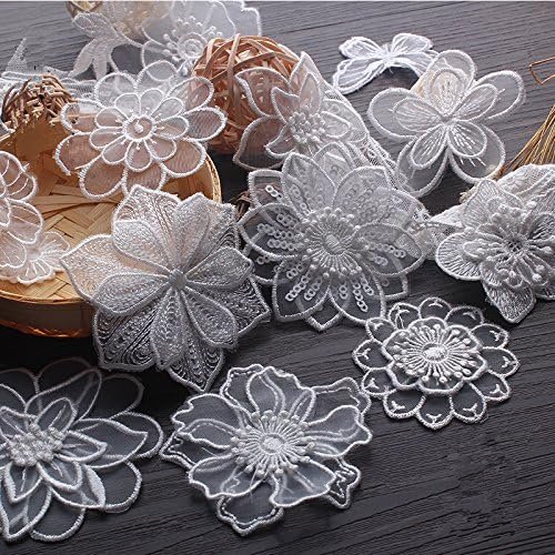 Sweetimes レース生地 刺繍花 縫製 DIY 服 工芸品の装飾 パッチ アップリケ モチーフ 10枚セット アイロン両面接着シート付No.16 (ホワイト10枚セット①)