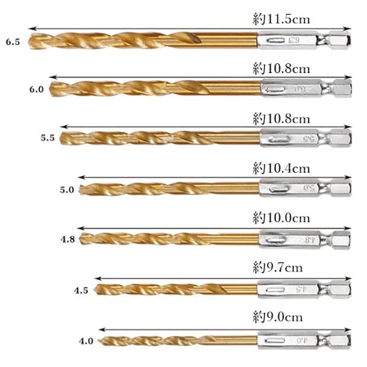 ・チタンコーティング仕上げのドリルビット13本セットです。 ・業務用としてだけではなく、DIYなど日曜大工時にもおすすめです。 ・電動ドリルやインパクトドライバーなどに装着して使用できます。 ・鉄やプラスチック、木材など幅広い場面で使用できます。 ・サイズ:1.5mm 2mm 2.5mm 3mm 3.2mm 3.5mm 4mm 4.5mm 4.8mm 5mm 5.5mm 6mm 6.5mm 計13本 【商品仕様】 表面処理 チタンコーティング