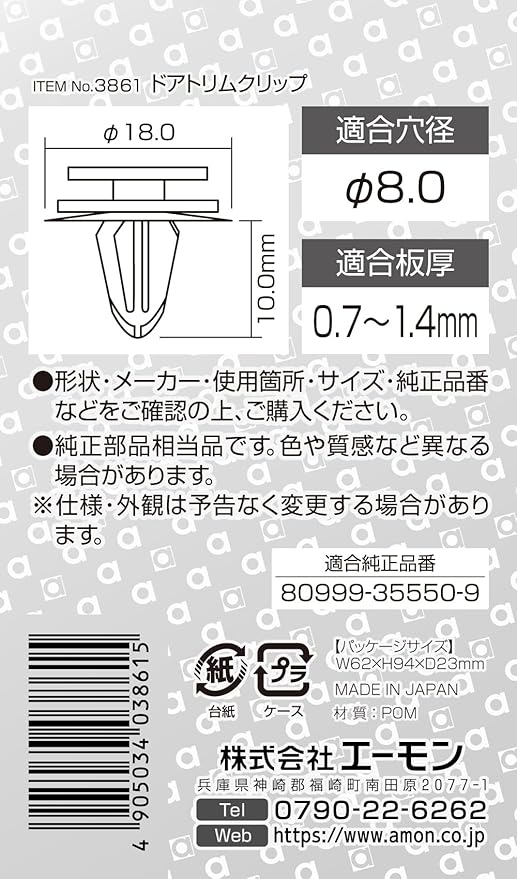 エーモン(amon) ドアトリムクリップ (日産車用) ドアトリム用 5個入 カーファスナー クリップ 内張りピン 3861