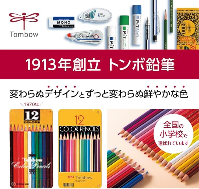 鮮やかな発色、優れた定着性、なめらかなタッチの高品質色芯のトンボの色鉛筆。