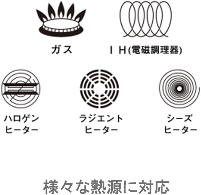 IHクッキングヒーター(電磁調理機器)対応。200Vの電気熱源にも使用可能