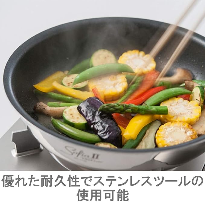 丈夫で錆びにくいステンレスと熱伝導率の良いアルミニウムの全面2層構造で効率よく調理できる