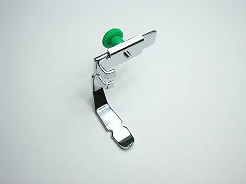 後方のねじをゆるめると押えが左右にスライドするので、左右の針落ち穴の位置に合わせて使用可能です。