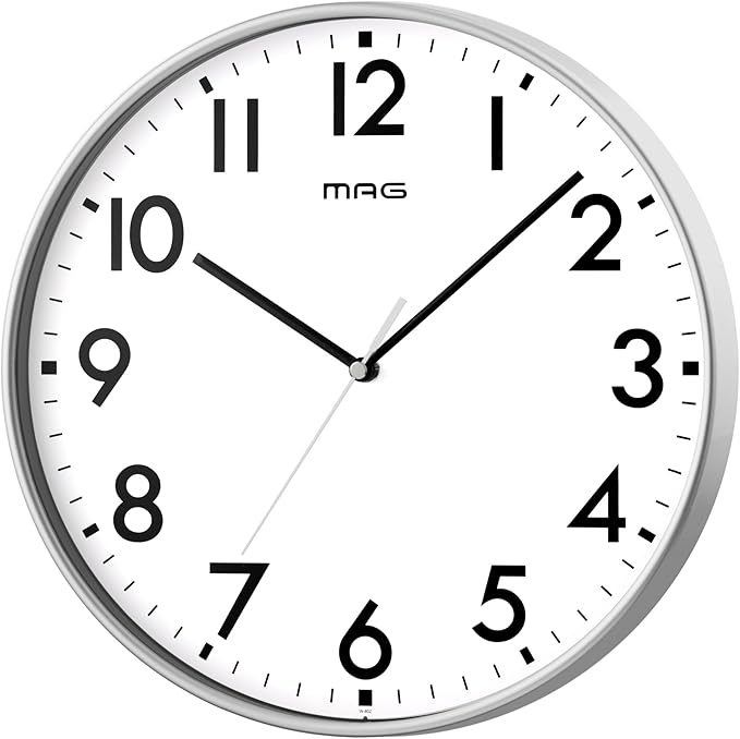 MAG(マグ) 掛け時計 掛け時計 アナログ 静音 連続秒針 シンプル 直径30.0㎝ シルバー レオン W-802A SM-Z ノア精密