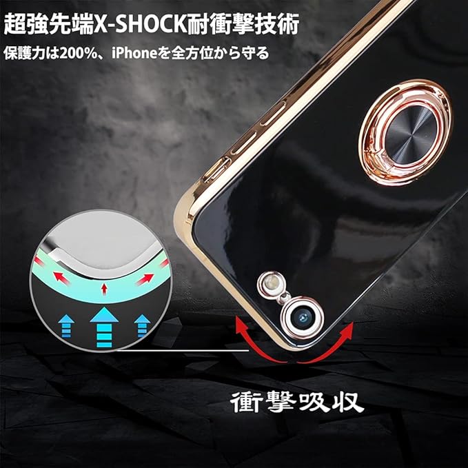【こだわり設計】リングはケースにしっかり固定されていて、縦置き、横置きどんな角度でも固定できます。レンズと画面より高い立ち上がり有効的にレンズと画面の摩損を防止する。ボダンホール部分はぴったり合うだけではなく、操作しやすい最適のサイズで作られる。