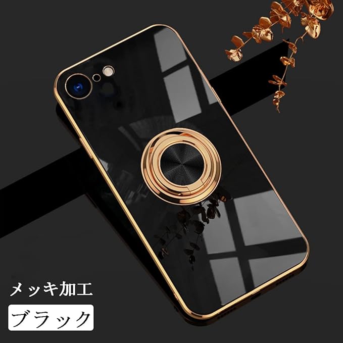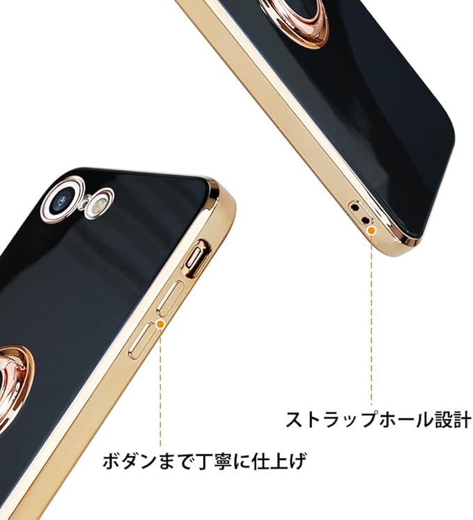 JOOBOY iPhone8 ケース iPhone7ケース iPhoneSE ケース 第2世代 第3世代 リング付き メッキ加工 レンズ保護 tpu ソフト ストラップホール付き 耐衝撃 スリム おしゃれ iPhone 8 アイフォン8 ケース (iPhone SE2/7/8/SE3, ブラック)