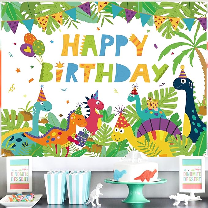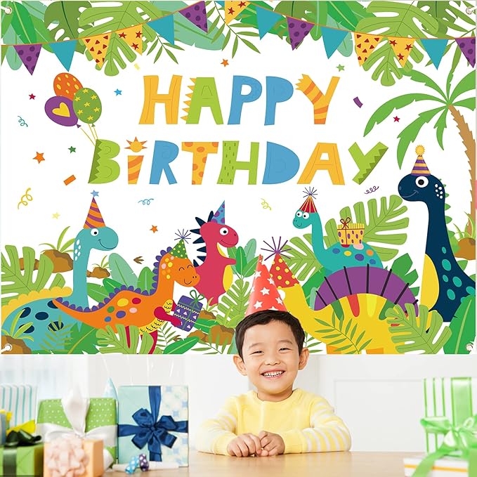 Paready バースデー タペストリー 誕生日 飾り付け 壁掛け フォトポスター 写真背景 壁 飾り Happy Birthday シンプル おしゃれ 装飾 デコレーション パーティー お祝い 女の子 男の子 135*100cm 恐竜