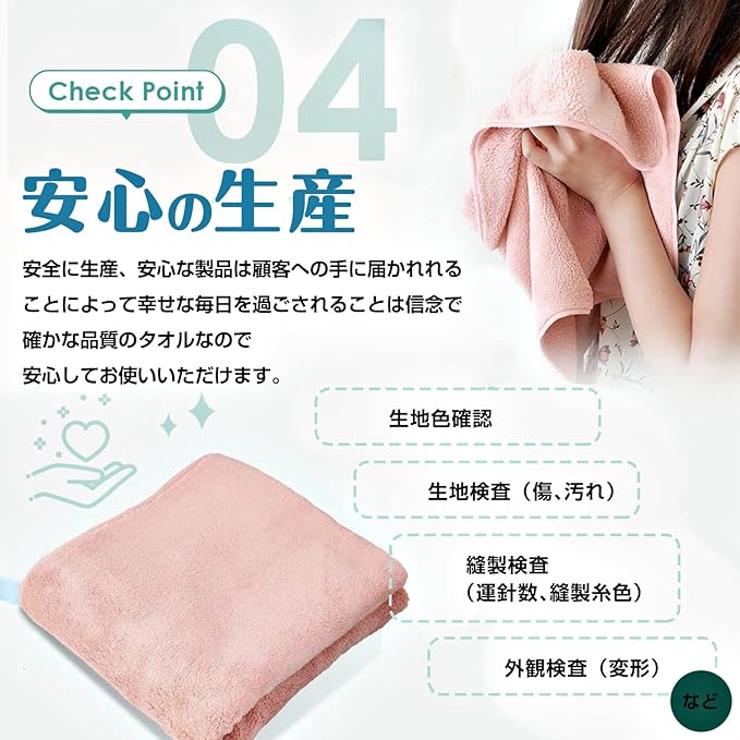 【乾きやすい】繊維の隙間が多いため、通気性が抜群でお肌の呼吸にじゃましない。吸水性が強くだけでなく、空気も多く含むことができます。速乾性にも優れているため、雨の日や冬場、梅雨時期でも洗濯して干しやすいのが大きなメリットです。洗濯機を使わなくても、軽く水を絞っておけばすぐに乾く、湿気によるカビや菌の繁殖も一定的に抑えます。