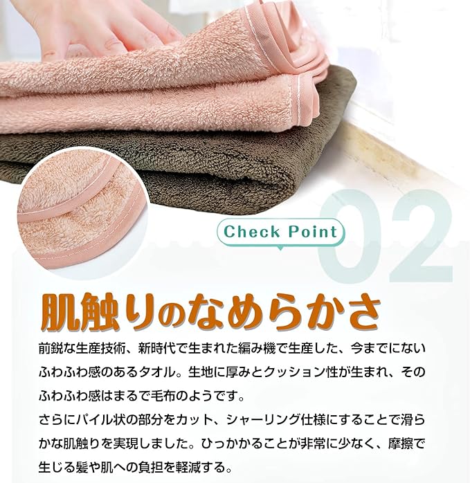 【抜群な吸水力】マイクロファイバーで作られていますので、吸水力は綿より3倍以上勝るという誇りの性能を持つ。繊維に多くの隙間があり、直径8マイクロメートル以下で、髪の毛の100分の1以下という細さです。なめらかな手触りと速乾性能や吸水性能の高さが光るポイント。身体を包み込むように羽織るだけでしっかり吸水します。