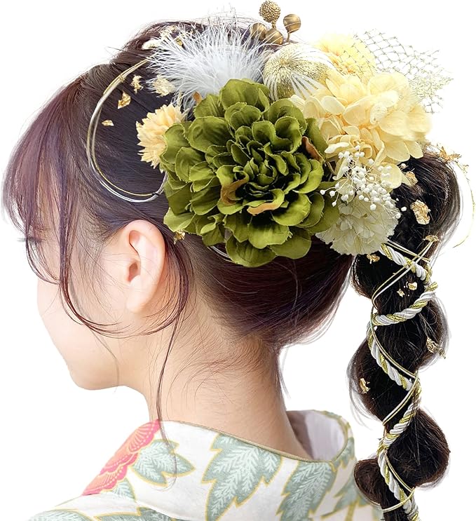 使用場面:結婚式、成人式、花火大会、卒業式、お祭りなどでの着物や浴衣にピッタリ!各パーツがUピン付きで、自由にアレンジできます。