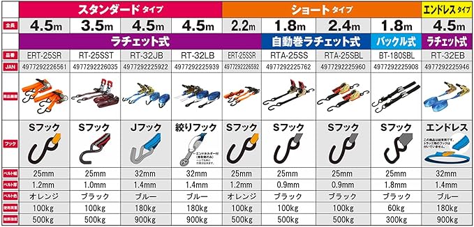 ※簡易バックルを使用していますので締め付け強度はラチェット式荷締機の1/2程度です。