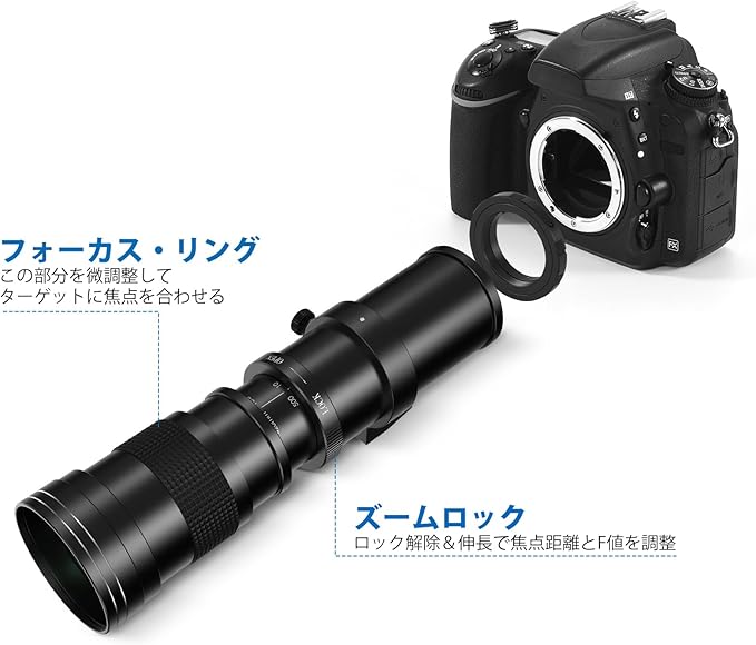 ✅【暖かいヒント】カメラは絞り値を表示しません、オートフォーカスや手ブレ補正はありません、わずかな手ブレが画質に大きな影響を与えます、画像を安定させるために、同時に三脚を使用することをお勧めします。マニュアルフォーカス望遠ズームレンズはデジタル一眼レフカメラに適しています。 キヤノンのミラーレスカメラには適用できません。