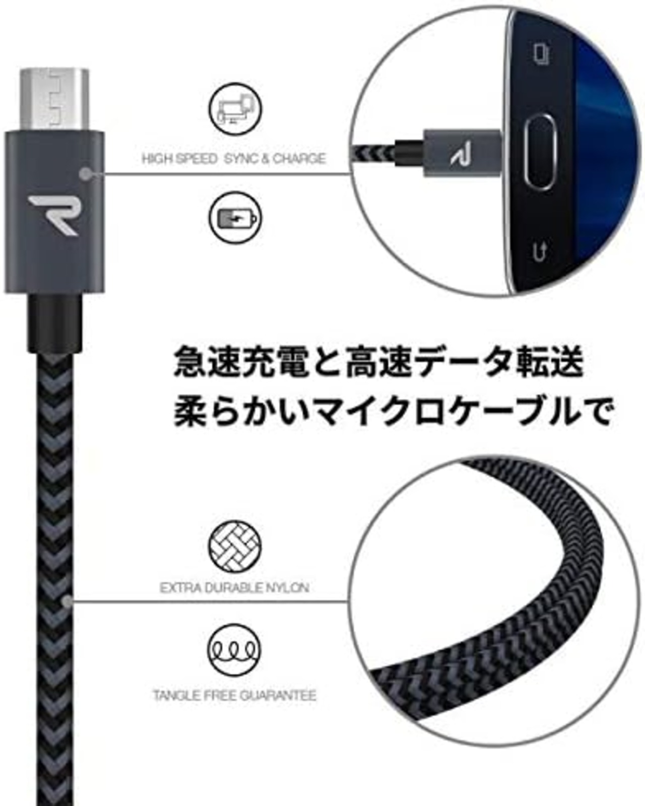 【幅広い適応】Sharp Aquos, Sony Xperia, Fujitsu Arrows, Asus ZenFone, Samsung, Huawei, Kindle, コントローラーなどマイクロusb機器にフルサポートします。手元の機器が「凸」のかたちのマイクロ端子かどうかをご確認お願いします。