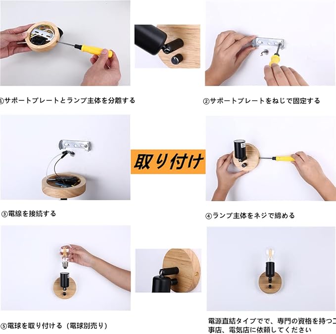 【取付 品質保証】電源直結タイプです、引っ掛けタイプではありません。取付は電線接続が必要ですので(黑-L 白-N 黄绿色-E)、専門の資格を持つ工事店、電気店に依頼してください、取付は電気工事士にご相談下さい。このブラケットライトは12ヶ月保証期間あり、製品について何か質問があるなら、お気軽にお問い合わせください。当店は問題を解決するために最善を尽くすことをお約束いたします。