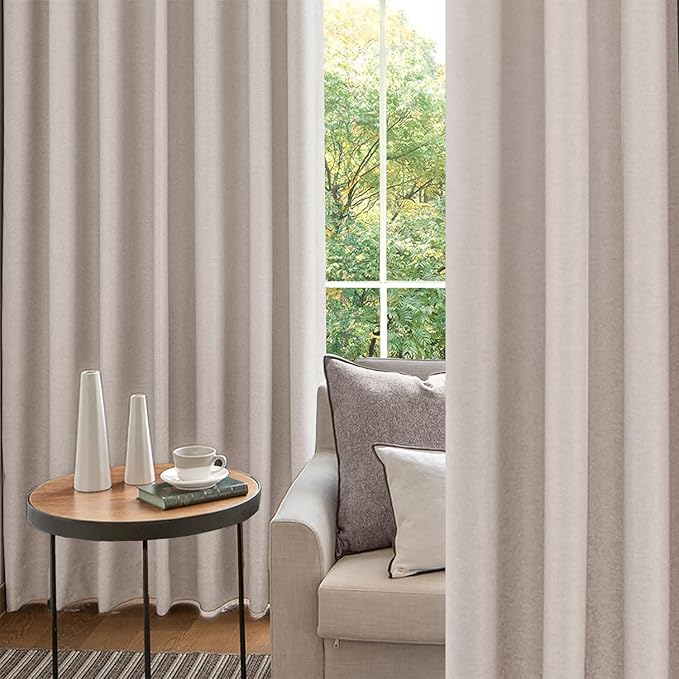 PANDA INTERIOR 北欧風 遮光カーテン 2枚セット 1級遮光 防音 断熱 既成カーテン 厚地 無地 スタイリッシュ 省エネ 調節可能フック付き 洗濯可 リビング 寝室 カフェ用 (ナチュラルホワイト,リネン風生地, 幅100cm 丈178cm-2枚)